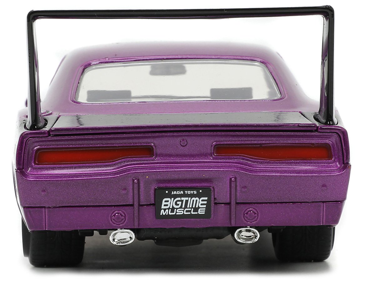 • Brand new 1/24 scale diecast car model of 1969 Dodge Charger Daytona Purple Metallic with Black Tail Stripe “Bigtime Muscle” Series die cast model car by Jada.
