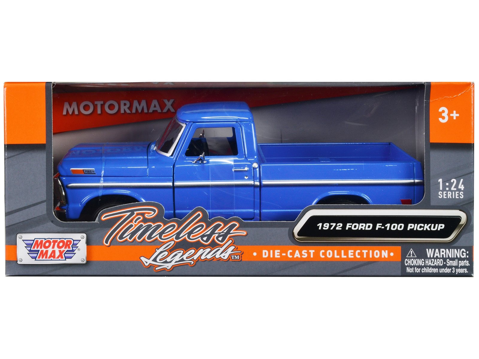 • Brand new 1/24 scale diecast car model of 1972 Ford F-100 Pickup Truck Blue “Timeless Legends” Series die cast model car by Motormax.