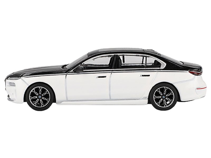 - Brand new 1/64 scale diecast car model of BMW i7 xDrive60 Dravit Alpine White and Black Sapphire Limited Edition die cast model car by Mini GT.