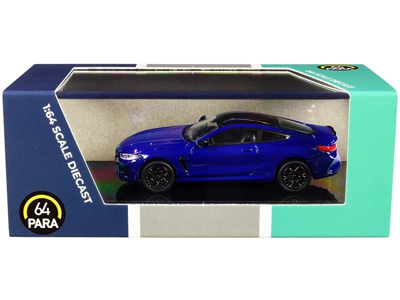 - Brand new 1/64 scale diecast car model of BMW M8 Coupe Marina Bay Blue Metallic with Black Top die cast model car by Paragon.