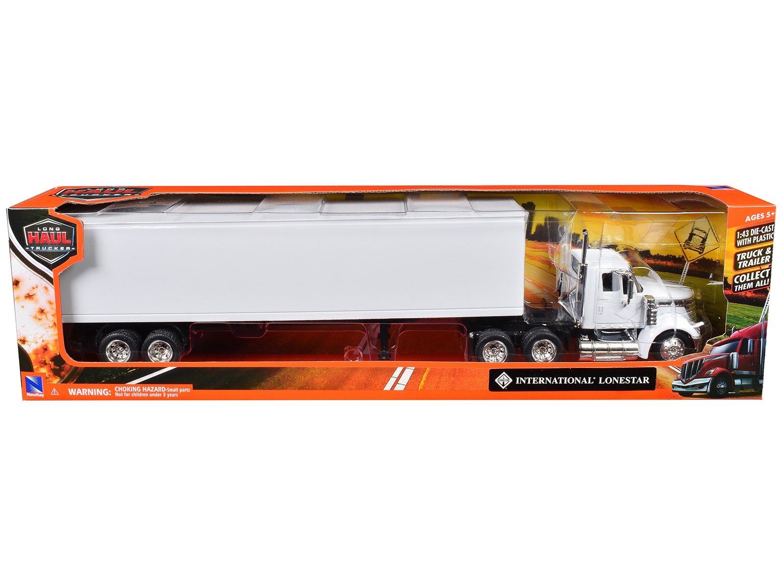 - Brand new 1/43 scale diecast model of International LoneStar Truck with Dry Goods Trailer White “Long Haul Truckers” Series die cast model by New Ray.
