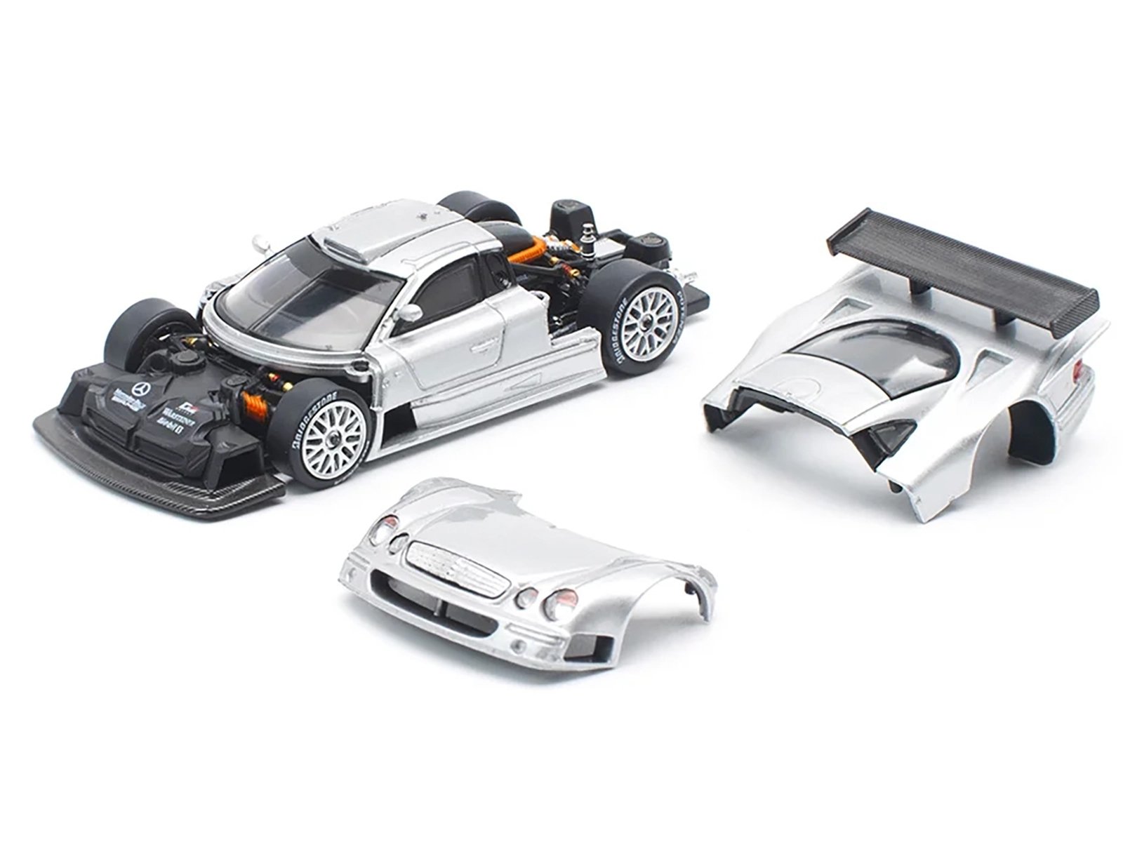 • Brand new 1/64 scale diecast car model of Mercedes-Benz CLK GTR Silver Metallic die cast model car by Pop Race.